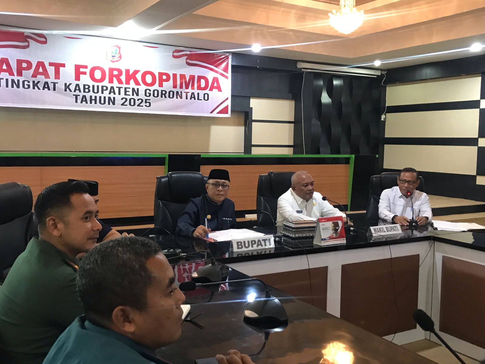 Pojok6.id (Limboto) – Bupati Gorontalo, Sofyan Puhi, melaksanakan rapat bersama unsur Forum Komunikasi Pimpinan Daerah (Forkopimda) Kabupaten Gorontalo di Ruang Madani. Selasa,(4/3/2024).