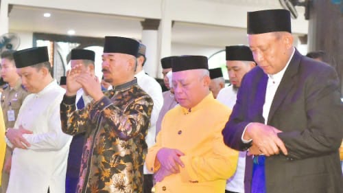 Usai salat, rangkaian kegiatan berlanjut di Aula Rumah Dinas Bupati, melalui doa haul dan doa Lo Ulipu sebagai bentuk penghormatan kepada leluhur. (Adv)