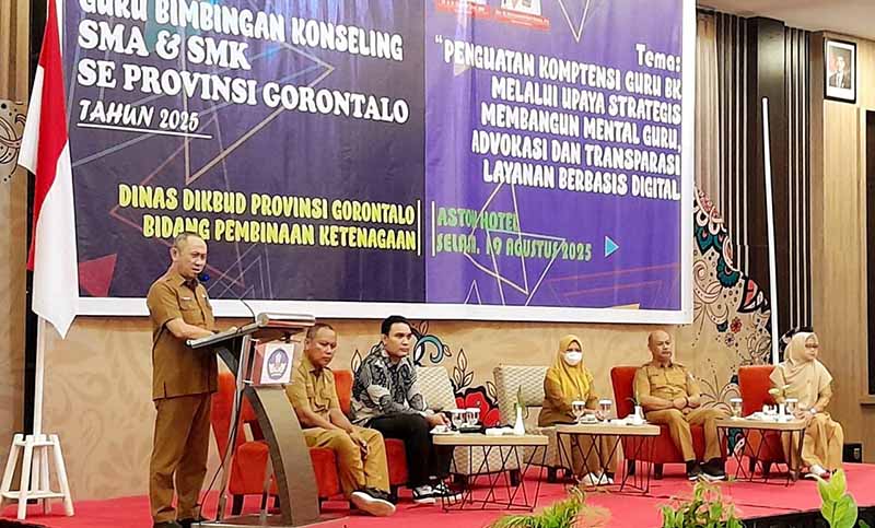 Pojok6.id (Gorontalo) – Dinas Pendidikan dan Kebudayaan (Dikbud) Provinsi Gorontalo melalui Bidang Guru dan Tenaga Kependidikan (GTK), menggelar Bimbingan teknis (Bimtek) Guru Bimbingan Konseling (BK) SMA dan SMK se-Provinsi Gorontalo Tahun 2025, pada Selasa (19/8/2025) di Ballroom Hotel Aston, Kota Gorontalo.