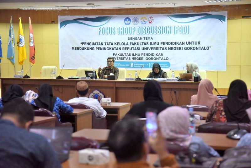 Pojok6.id (UNG) – Dalam upaya memperkuat tata kelola kelembagaan yang efektif dan berorientasi pada peningkatan reputasi institusi, Fakultas Ilmu Pendidikan Universitas Negeri Gorontalo (FIP UNG) menggelar kegiatan Focus Group Discussion (FGD) bertajuk “Penguatan Tata Kelola Fakultas Ilmu Pendidikan untuk Mendukung Peningkatan Reputasi UNG”.