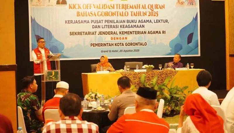 Pojok6.id (Kota Gorontalo) – Wakil Wali Kota Gorontalo, Indra Gobel, resmi membuka pelaksanaan Kick Off Validasi Terjemahan Al-Quran dalam bahasa Gorontalo, yang berlangsung pada Rabu (20/8/2025), di Grand Q Hotel Kota Gorontalo.