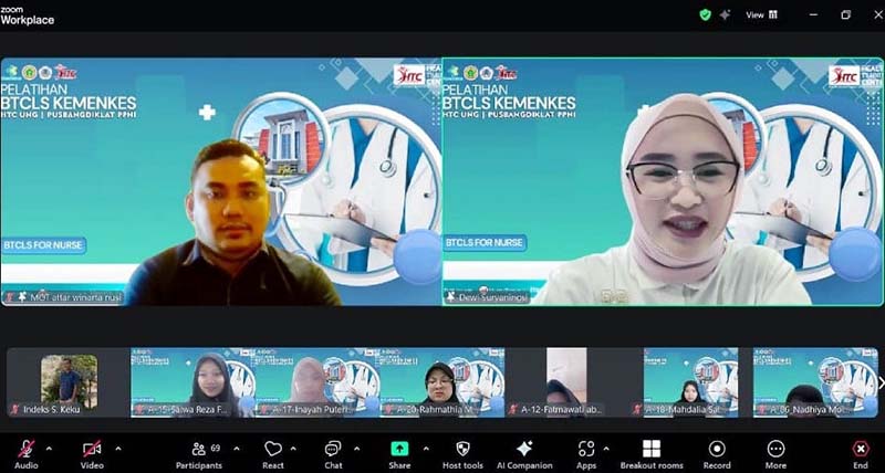 Pojok6.id (UNG) – Sebanyak 66 mahasiswa Program Studi Pendidikan Profesi Ners Fakultas Olahraga dan Kesehatan (FOK) Universitas Negeri Gorontalo (UNG), mengikuti Pelatihan Basic Trauma Cardiac Life Support (BTCLS) Angkatan 2, yang dilaksanakan via daring atau secara online.