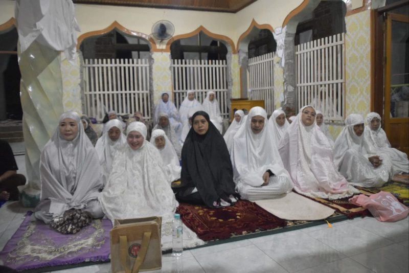 Ketua Tim Penggerak Pemberdayaan dan Kesejahteraan Keluarga (TP-PKK) Kabupaten Gorontalo, Ny. Maryam Sofyan Puhi, saat tarwih dan witir Masjid Jami Baitur Ridha, Desa Luwoo, Kecamatan Telaga Jaya. Foto Humas