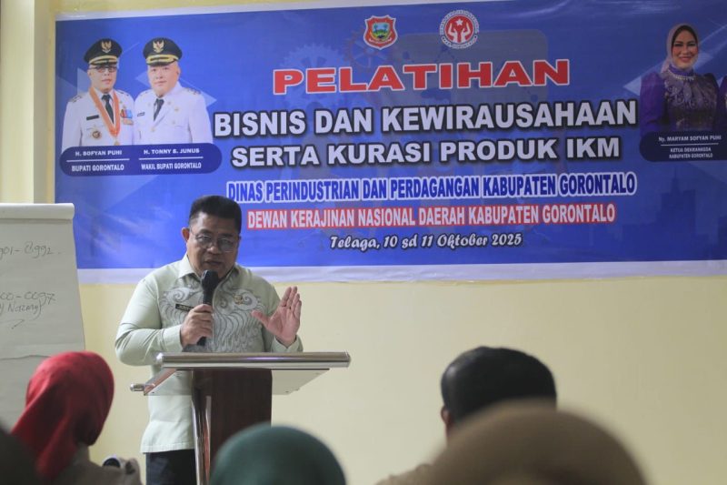 Dukungan itu disampaikan Sugondo, pada pelatihan bisnis dan kewirausahaan serta kurasi produk IKM di Pusat Layanan Usaha Terpadu (PLUT) Desa Bulia, Kecamatan Telaga, Jumat (10/10/2025).