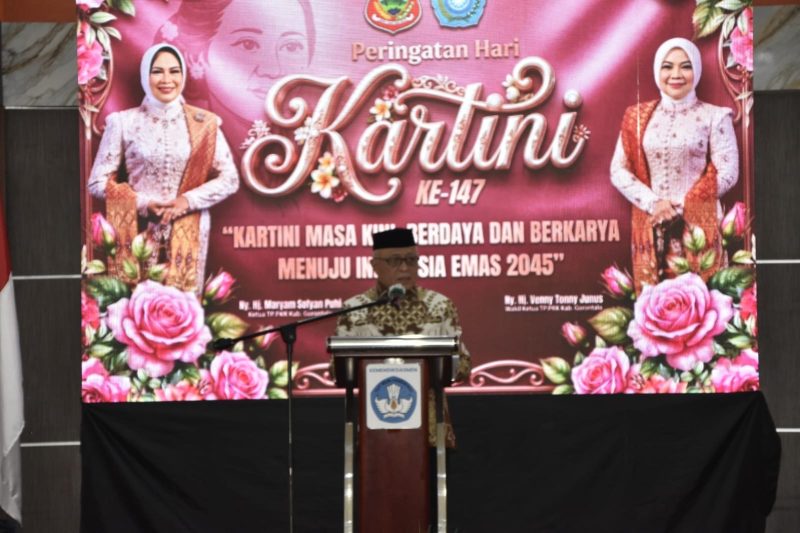 Hal itu disampaikan Bupati Sofyan, saat menghadiri Peringatan Hari Kartini ke-147 tingkat Kabupaten Gorontalo yang digelar di Gedung KGTK, Desa Pentadio Timur, Kecamatan Telaga Biru, Sabtu (25/04/2026).