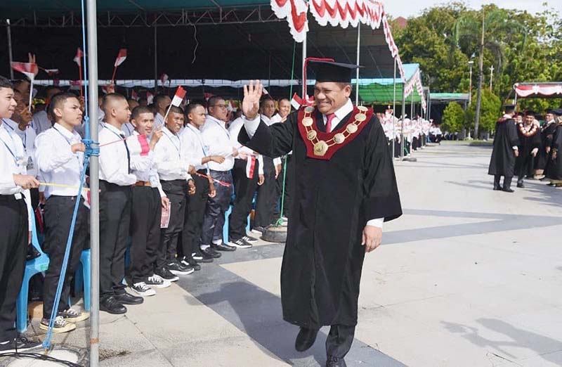 Kehadiran ribuan mahasiswa baru dari 11 fakultas dan program vokasi tersebut, disambut langsung Rektor UNG, Prof. Eduart Wolok, dalam kegiatan Pengenalan Kehidupan Kampus Mahasiswa Baru (PKKMB) UNG Tahun 2025, Senin (11/8/2025) di Lapangan Rektorat UNG.