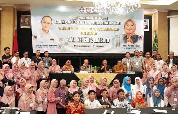 Hal itu disampaikan Kadis Dikbud Rusli Nusi, saat membuka secara resmi Diklat Pengembangan Inovasi Konten Pembelajaran dan Metode Pembelajaran “Meramu Konten, Merawat Metode, Menguatkan Pembelajaran” SMAN 2 Limboto, Minggu (21/12/2025), bertempat di Grand Q Hotel, Kota Gorontalo.