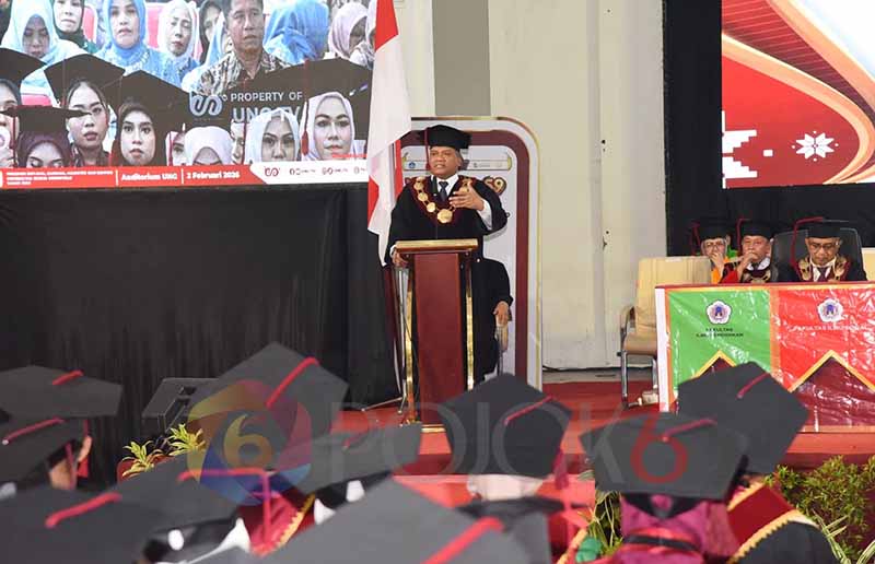 Pojok6.id (UNG) – Keberhasilan lulusan terbaik UNG, yang dikukuhkan dalam prosesi wisuda ke-59 menjadi momen membahagiakan untuk seluruh civitas akademika. Ditengah momen haru tersebut, Rektor UNG Prof. Dr. Ir. Eduart Wolok, ST., MT., IPU., ASEAN.Eng., menitipkan pesan penting untuk lulusan UNG yang akan segera kembali ke masyarakat.